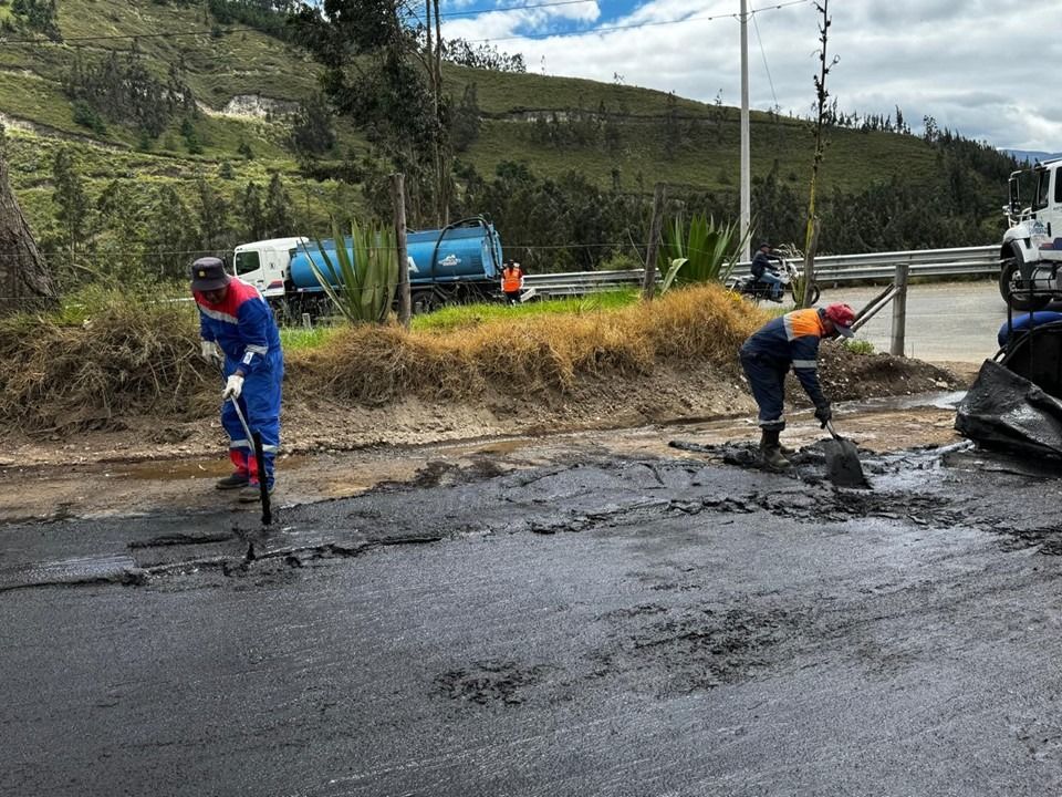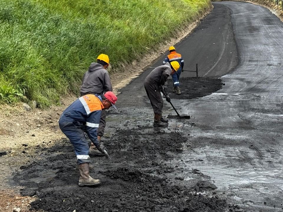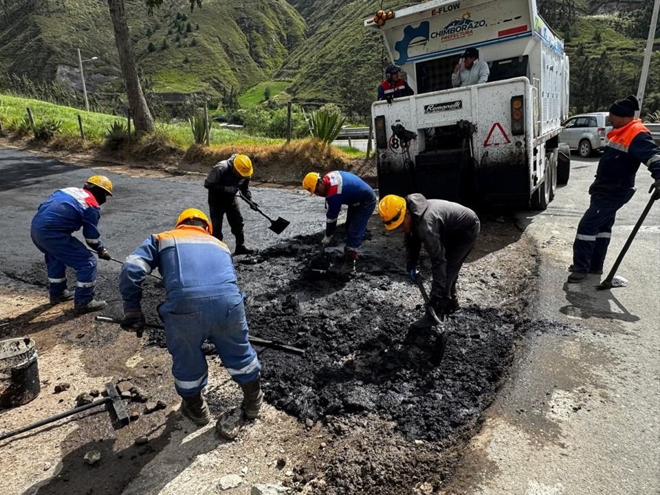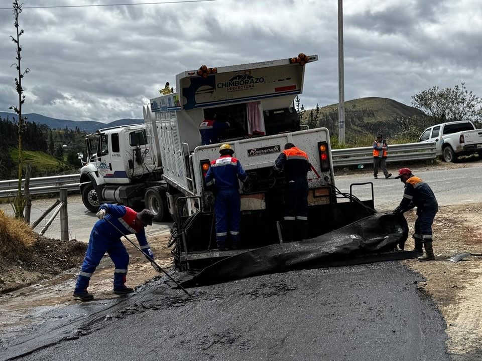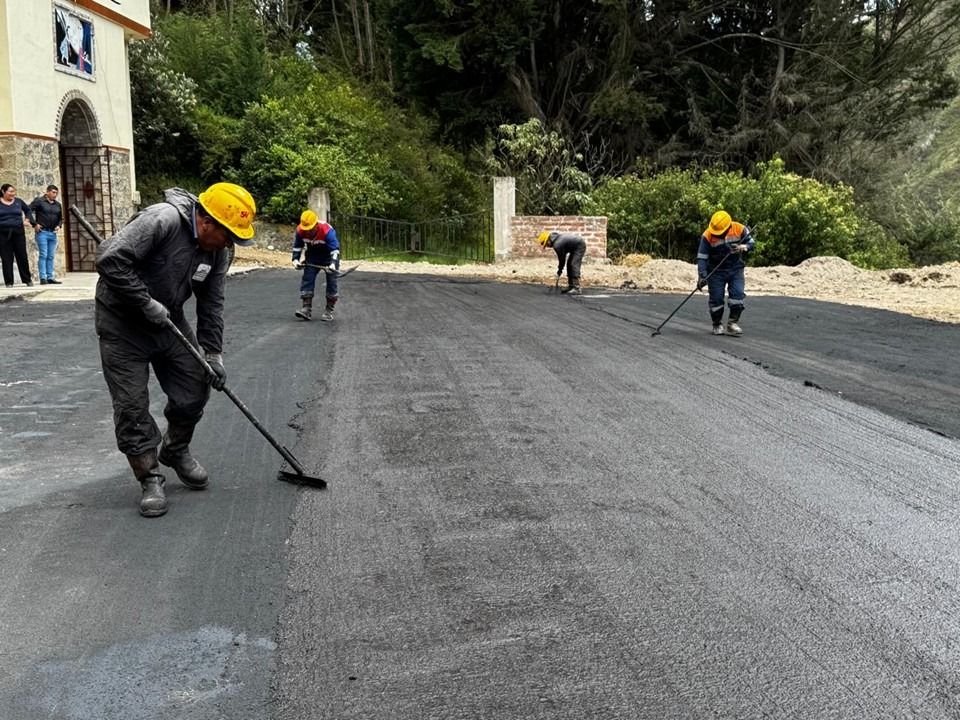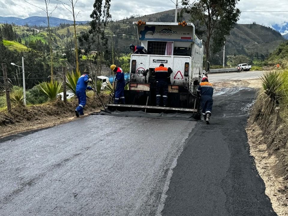 Avanza el reasfaltado de la vía a la Virgen de la Anunciación del Puente con apoyo del GAD Quimiag y la Prefectura